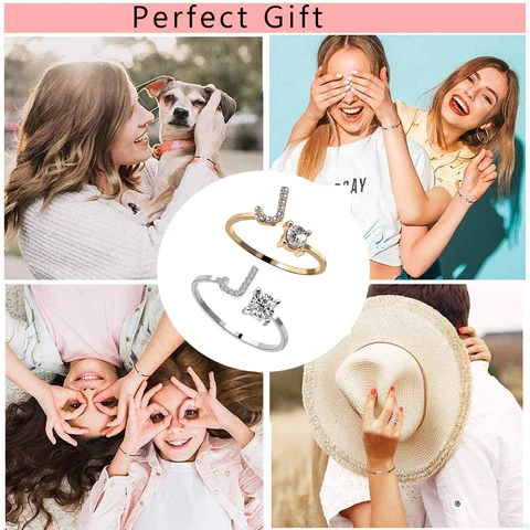 Este simple y dulce A-Z ajustable letra inicial con Rhinestone anillo personalizado puede ser un perfecto: