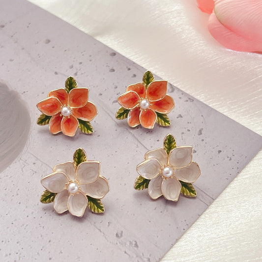 Brincos de agulha de prata 925 prata vintage elegantes luxuosos Gardenia esmaltados